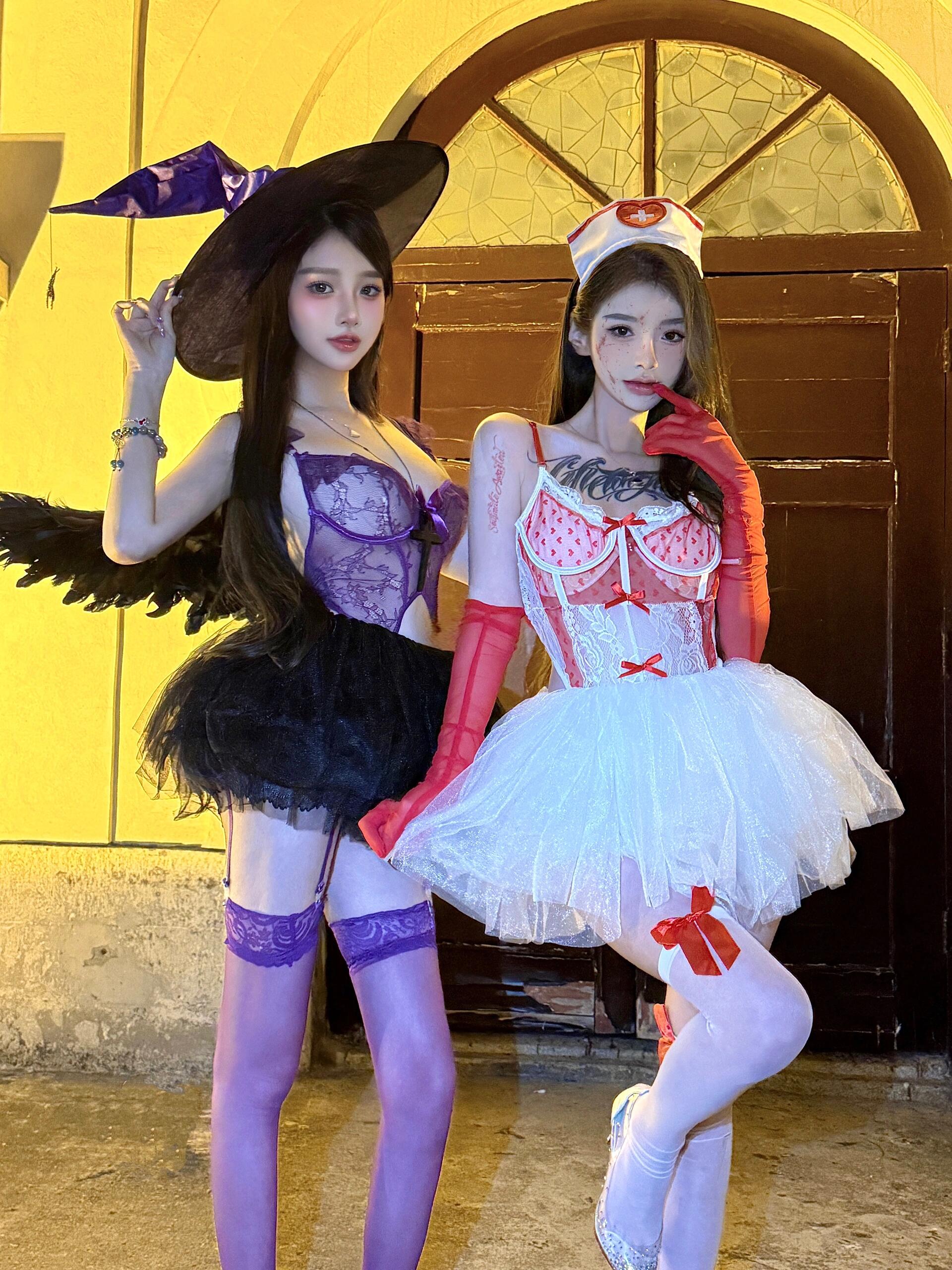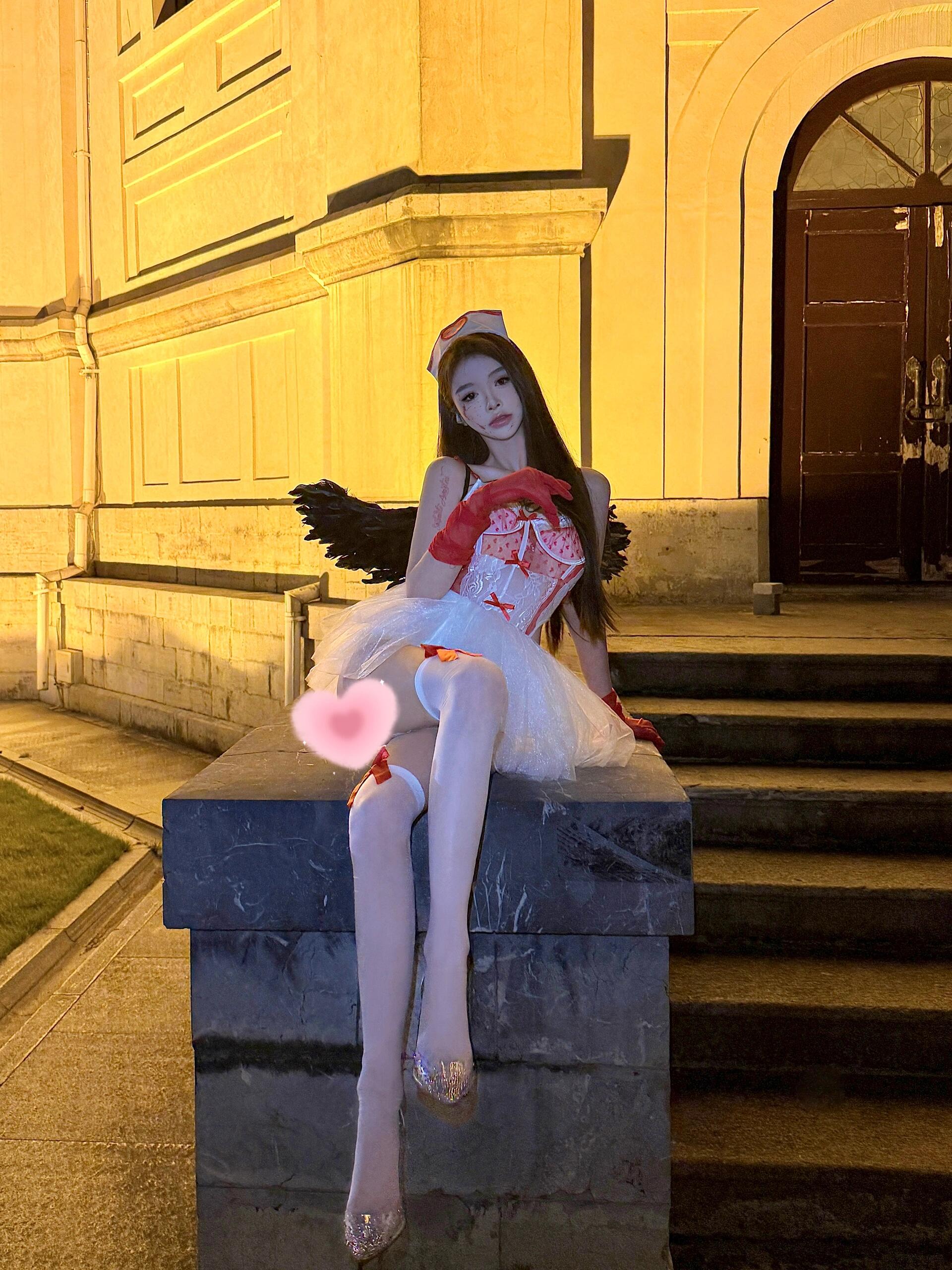 I wore these white thigh-highs for our late-night Halloween stream, when my friend and I dressed up as angels and read spooky stories to the chat. We laughed so hard we snort-laughed on camera, and I spilled hot cocoa all over the fabric. It’s still slightly stained at the toes, carrying the faint scent of cocoa, fake blood, and the heat of the room.